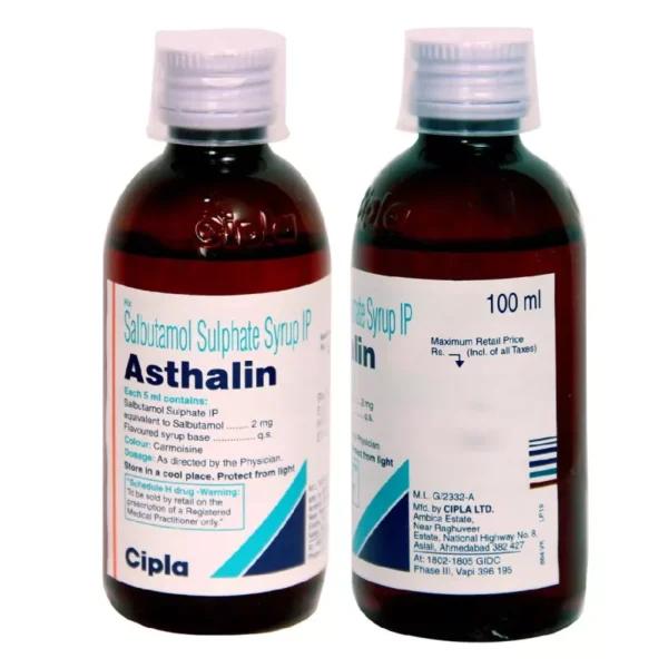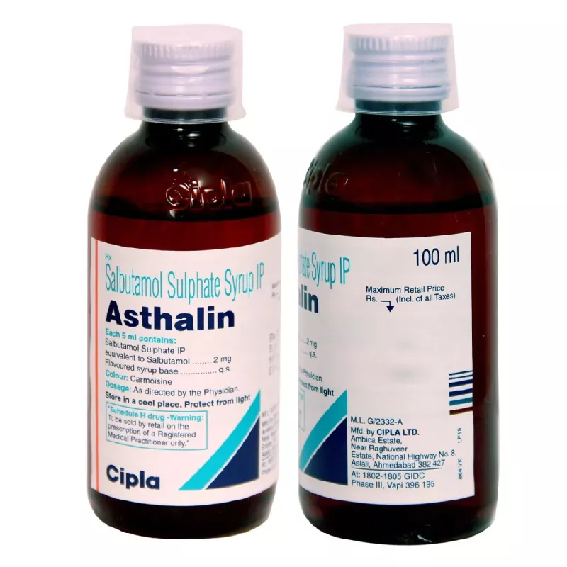 Asthalin Syrup is used to relieve symptoms of asthma and chronic obstructive pulmonary diseases (COPD) such as coughing, wheezing, and breathlessness. It helps in relaxing the muscles of the air passages, thus widening it and making it easier to breathe.